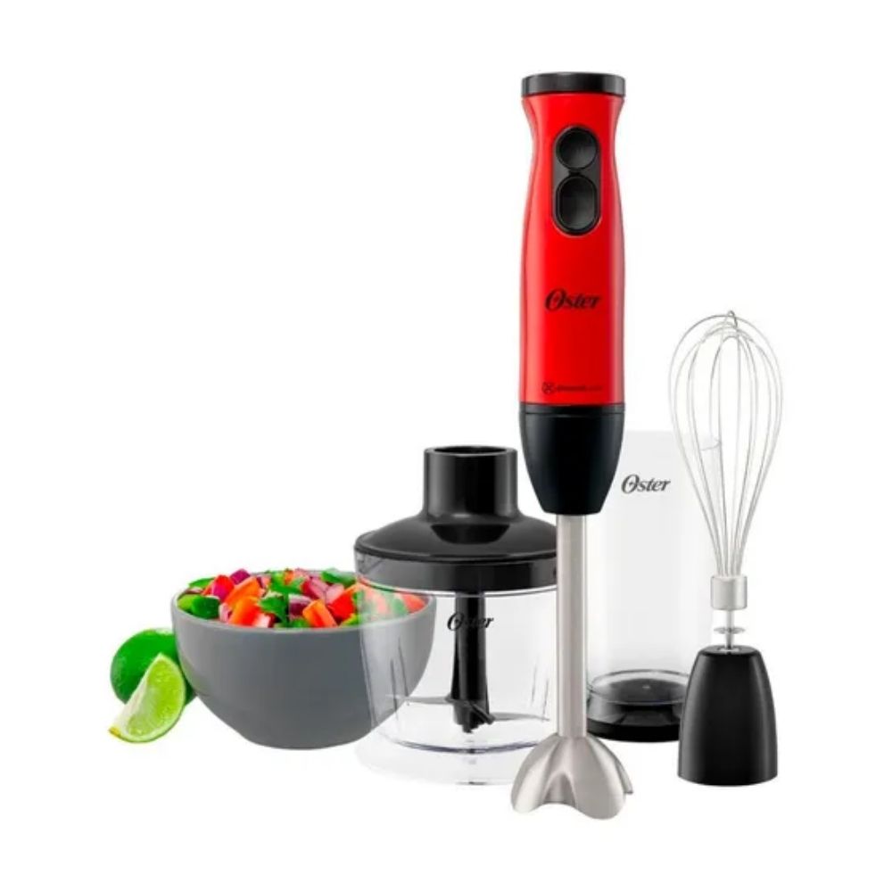 La Batidora de Inmersión Oster es el aliado perfecto en tu cocina. Con su cuchilla Quadblade de cuatro aspas y motor de 400 W, logra mezclas rápidas y homogéneas en segundos. Su función Turbo brinda potencia extra cuando la necesitas y, gracias a sus accesorios incluidos picatodo, vaso medidor y batidor de acero inoxidable, podrás preparar desde salsas y cremas hasta jugos y postres.