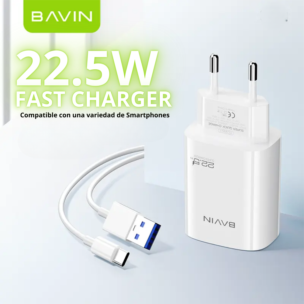 Cargador Bavin PC995Y 22.5W con Puerto USB y Cable | Carga Rápida