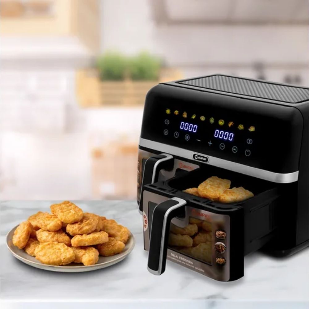 Una freidora diseñada para transformar tu cocina: sana, eficiente y elegante. Perfecta para hogares grandes, quienes cocinan seguido o disfrutan recibir visitas, con funciones inteligentes que simplifican todo el proceso.