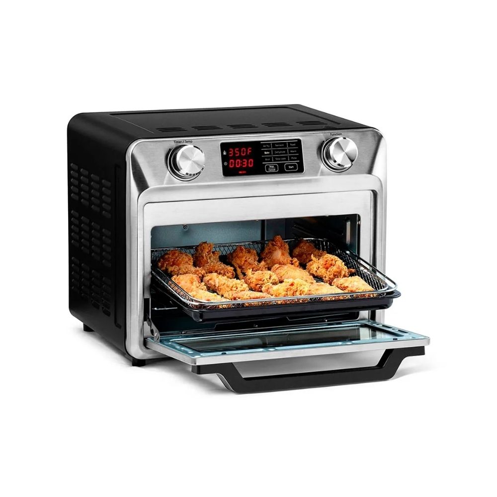 Gracias a su panel digital de fácil uso, podrás seleccionar entre múltiples funciones preprogramadas, ajustar la temperatura y el tiempo con precisión, y disfrutar de resultados uniformes gracias a su tecnología de circulación de aire caliente.